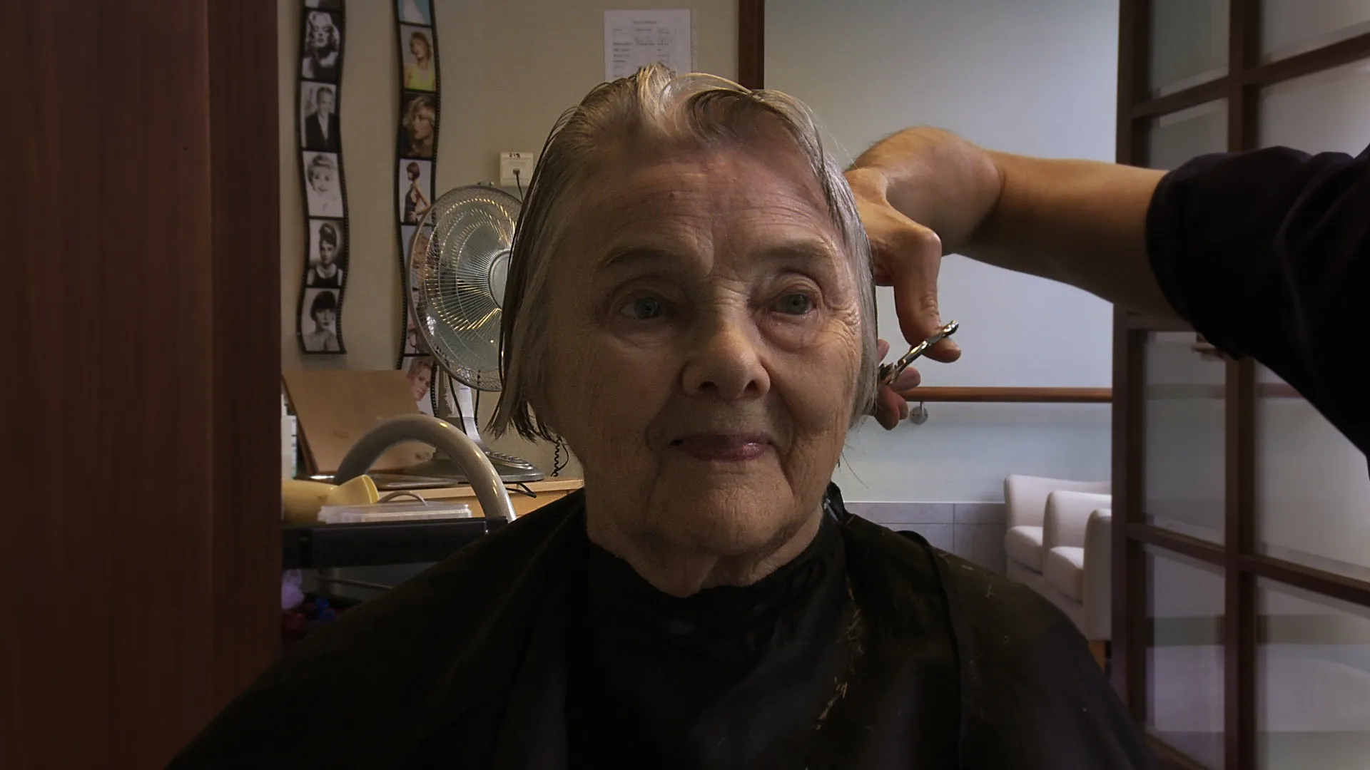 Chez le coiffeur d'une maison de repos spécialisée dans l'accueil des personnes atteintes d'Alzheimer, on échange des regards, on prononce des mots..