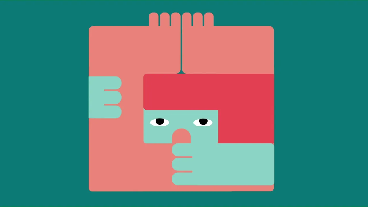 Dans un carré, un couple s'imbrique et se remodule comme un jeu de puzzle.