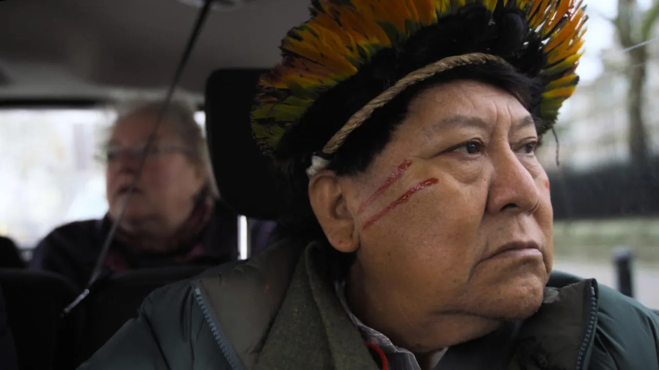 Het regenwoud gaat ten onder, de aarde warmt op en goudzoekers vervuilen de rivieren. Davi Kopenawa, sjamaan en woordvoerder van het Yanomami volk in Brazilië, vecht met al zijn krachten tegen de ondergang. Hij verlaat het woud en reist de wereld rond om te getuigen en zijn volk te beschermen.
